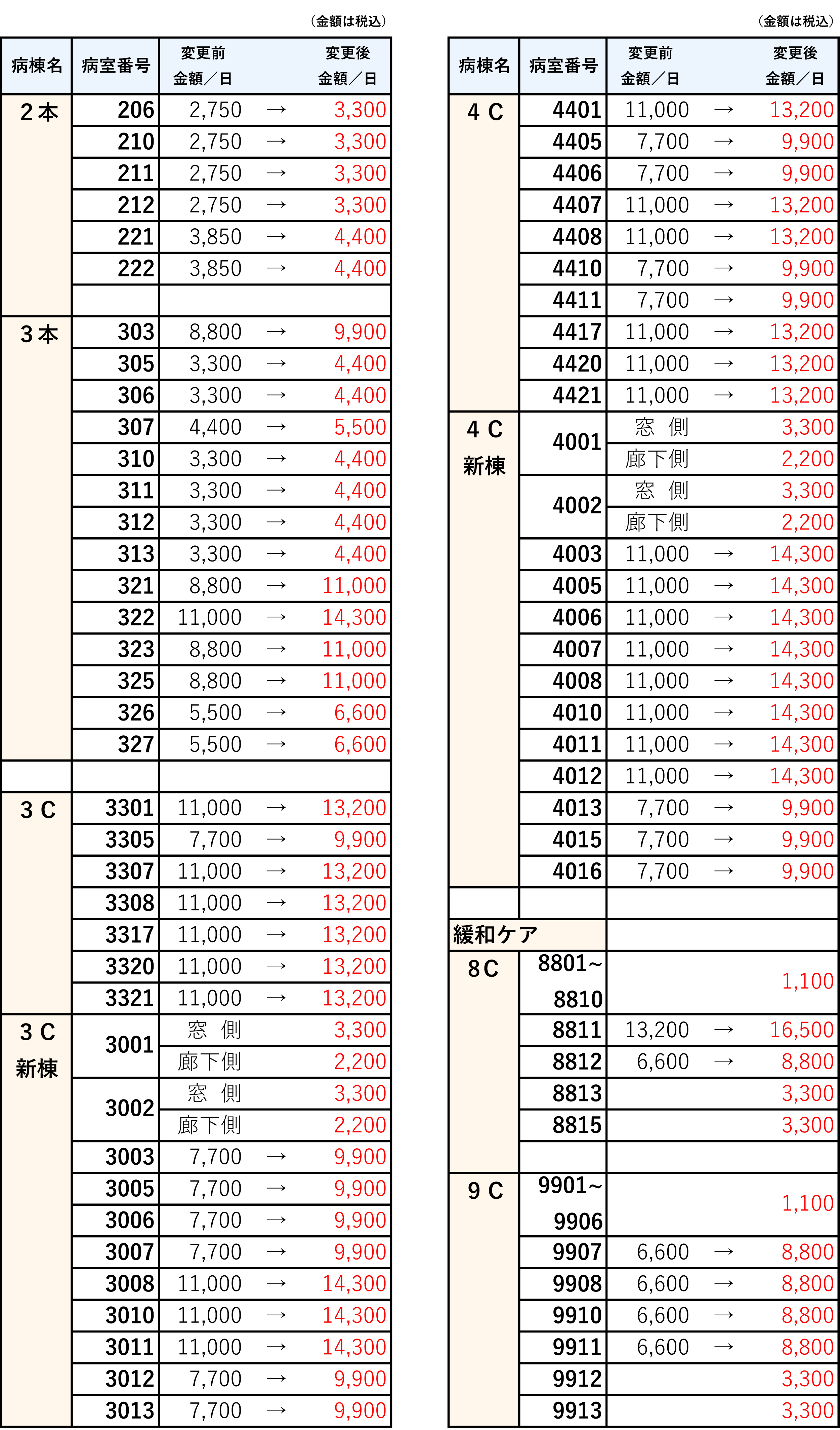 ※9月30日現在個室をご利用の患者様は、変更前の料金での請求となります。